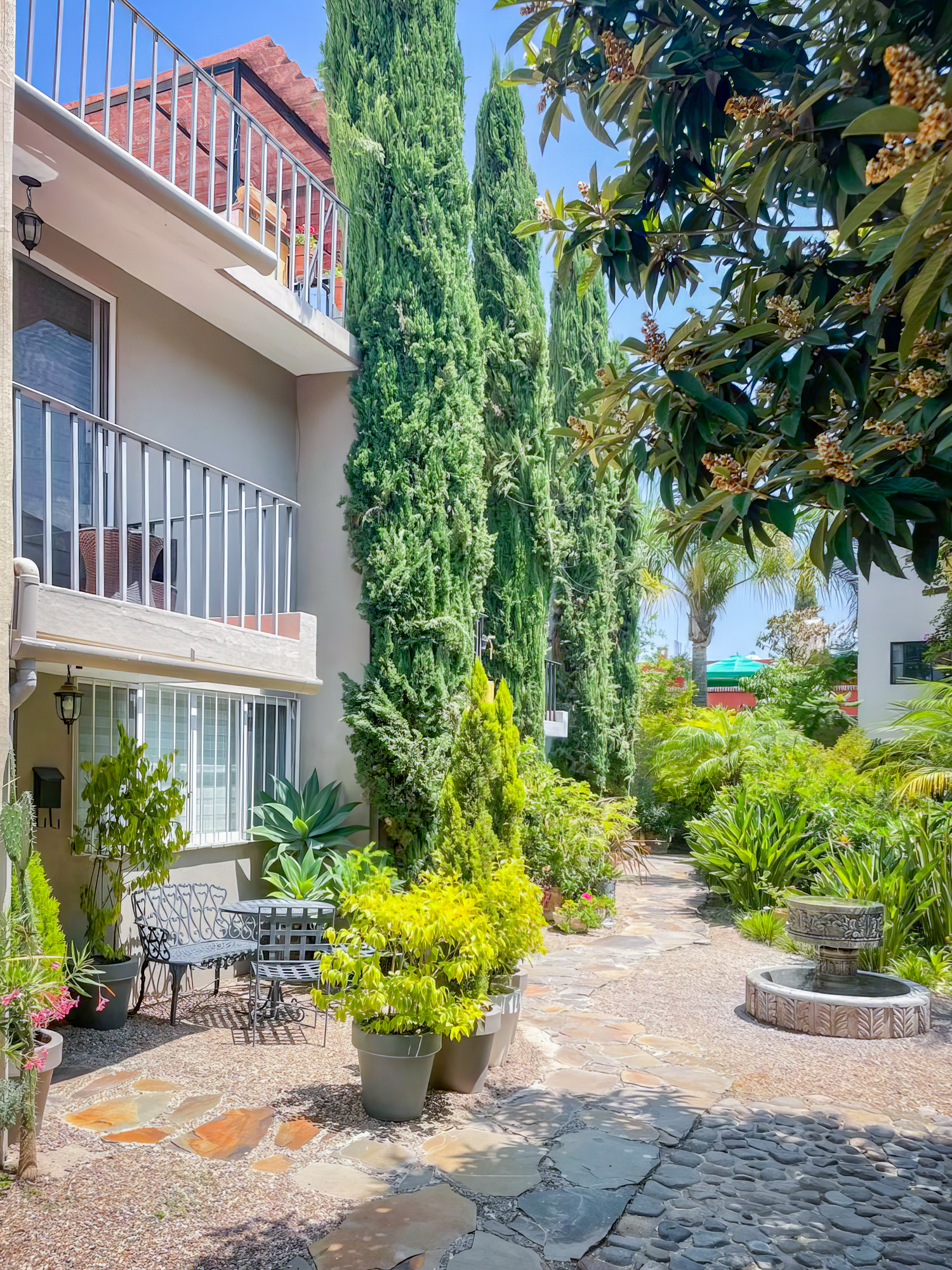 Within these sacred walls are these seven apartments, there is a dipping pool, central courtyard and a steam room/spa. This is a beautiful, private enclave smack in the middle of beautiful downtown San Miguel.
